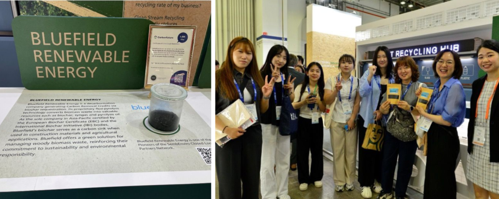 Dr. Tan Yong Tsong shared with Mr. Stanley Loh, Permanent Secretary for Sustainability & Environment on Bluefield’s mission and vision in reimagining waste and driving decarbonization.  Dr. Amy Khor, Senior Minister of State for Sustainability and the Environment and Senior Minister of State for Transport, was also hosted at Bluefield’s booth.